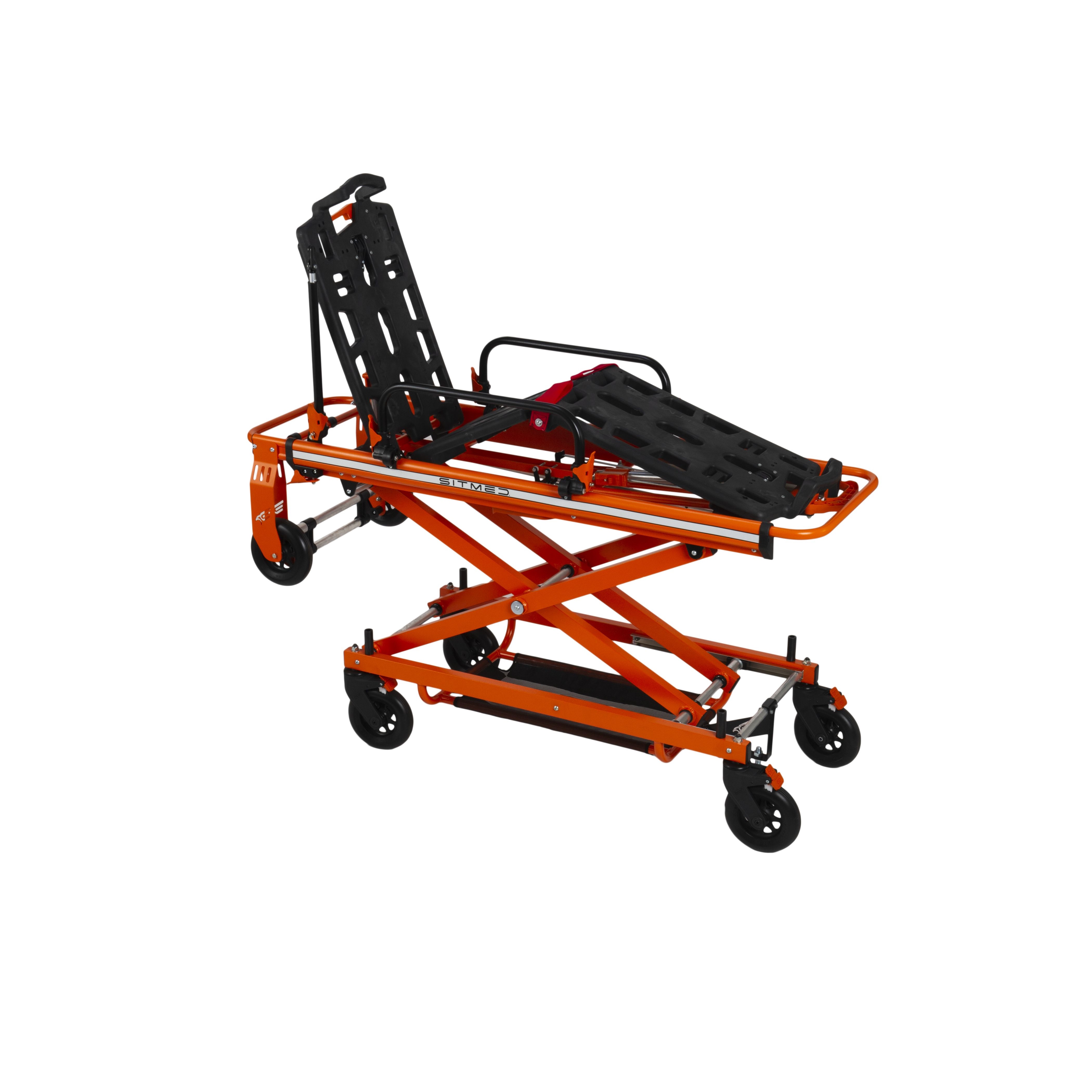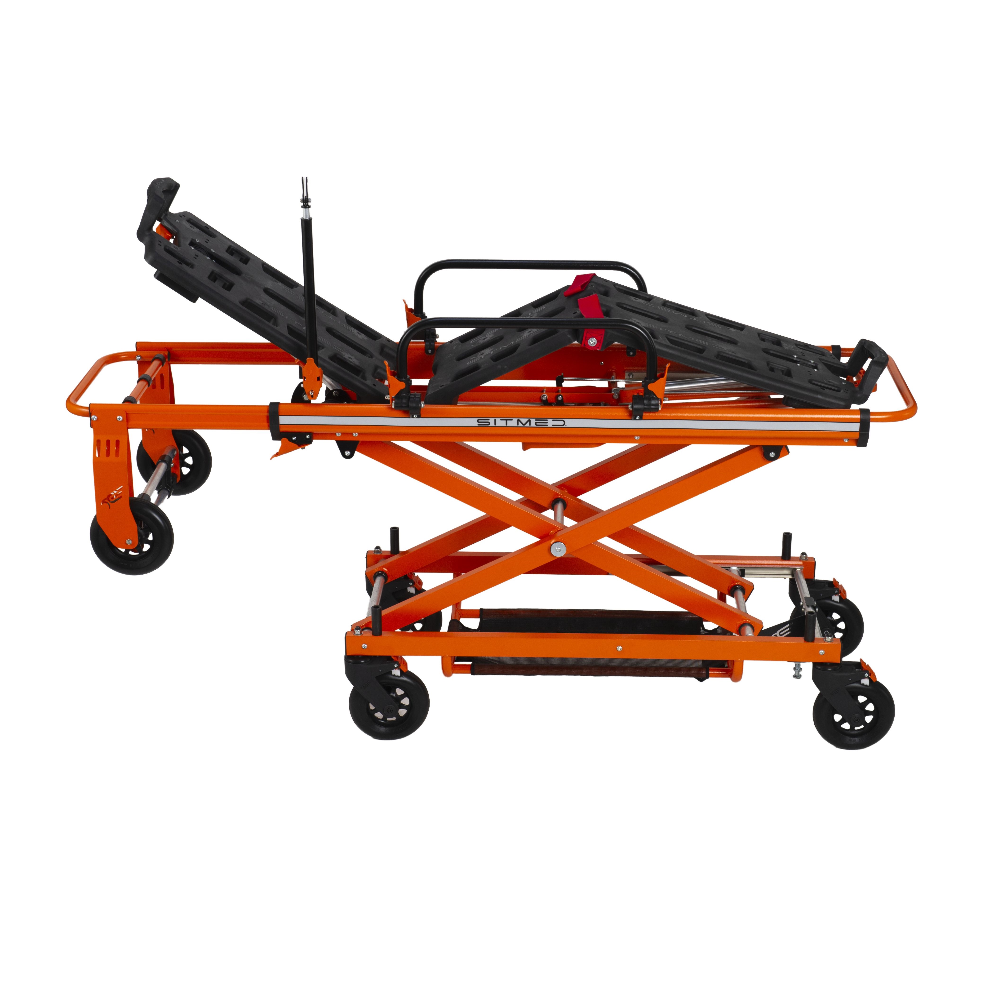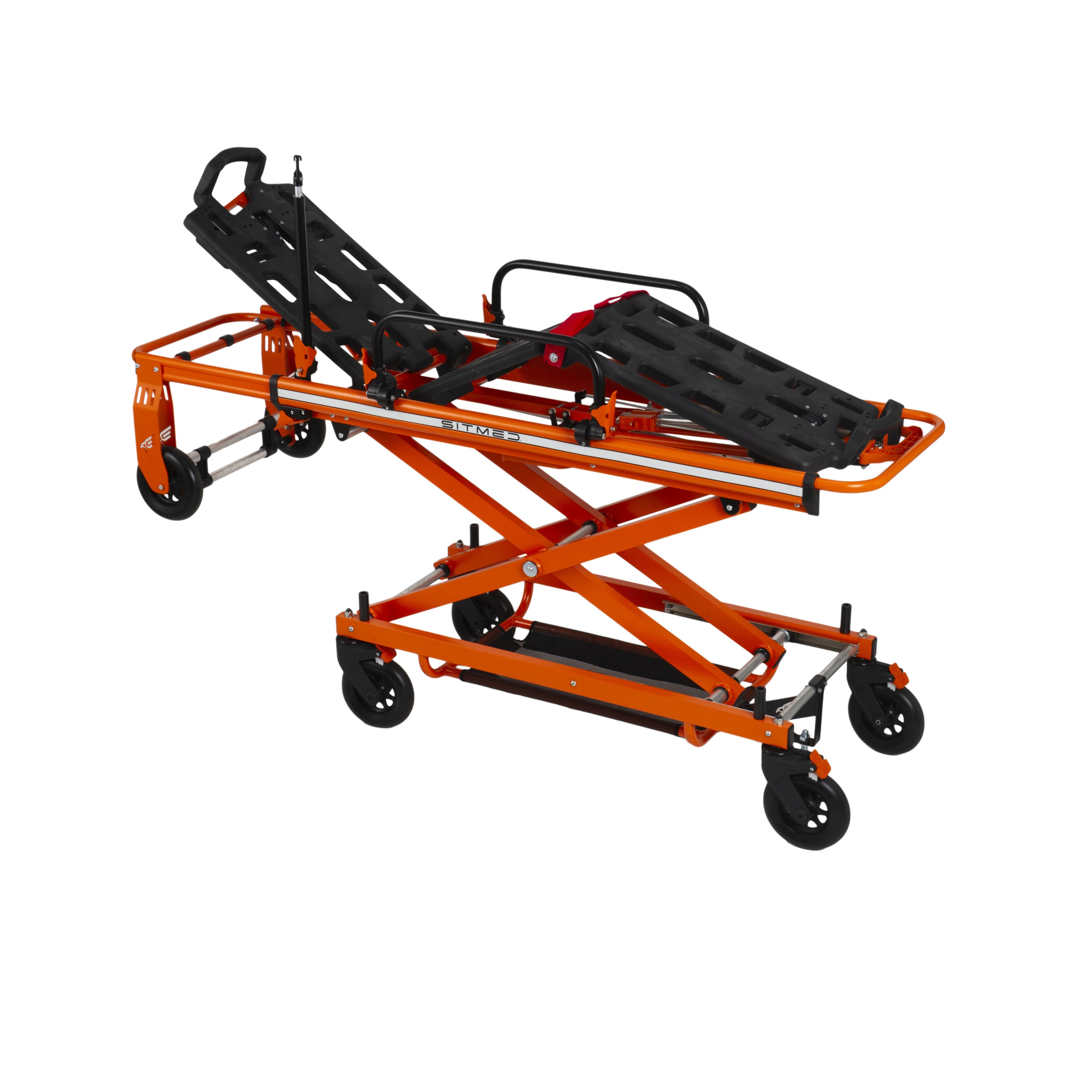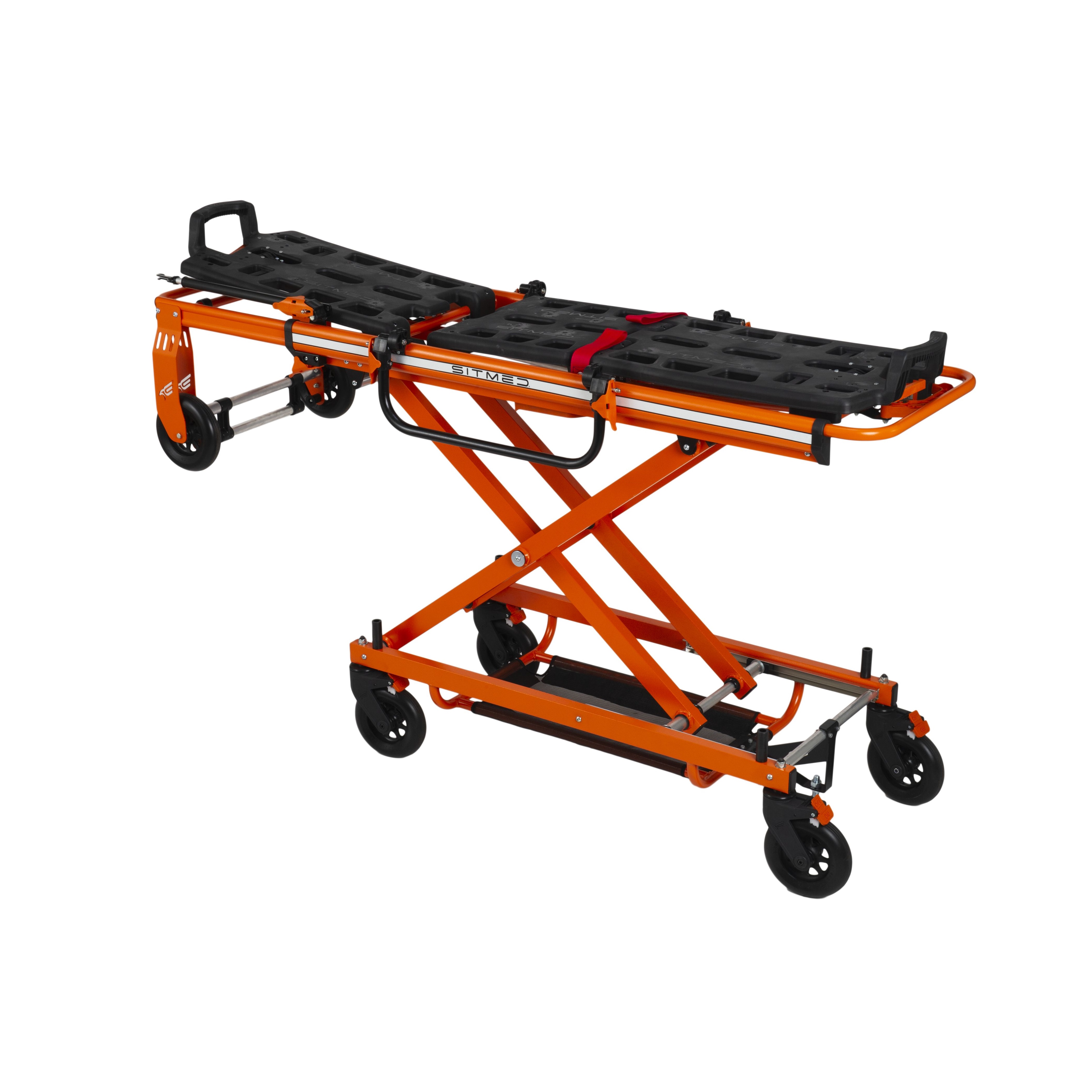 Camilla Pantográfica MXS 331 – Sitmed Elevex II, especialmente diseñada para cargas pesadas, permite ajustes intermedios de altura para su uso en diferentes vehículos de rescate y emergencia y para facilitar el traslado de los pacientes de la cama hospitalaria a la camilla, o viceversa. Construida en duraluminio ligero y resistente, dispone de sistema de apertura y cierre de patas pantográfico. Ofrece agilidad, seguridad, practicidad y robustez.