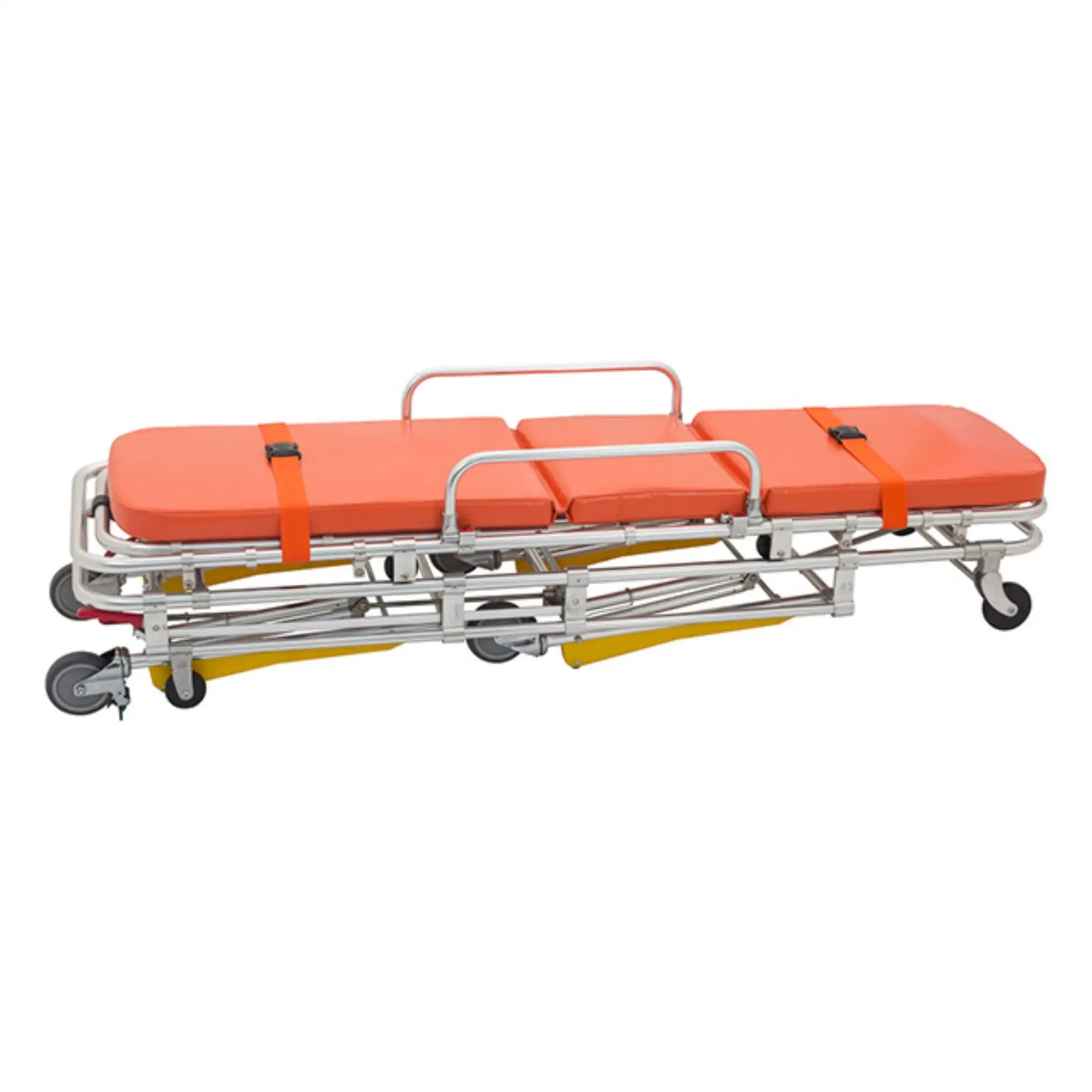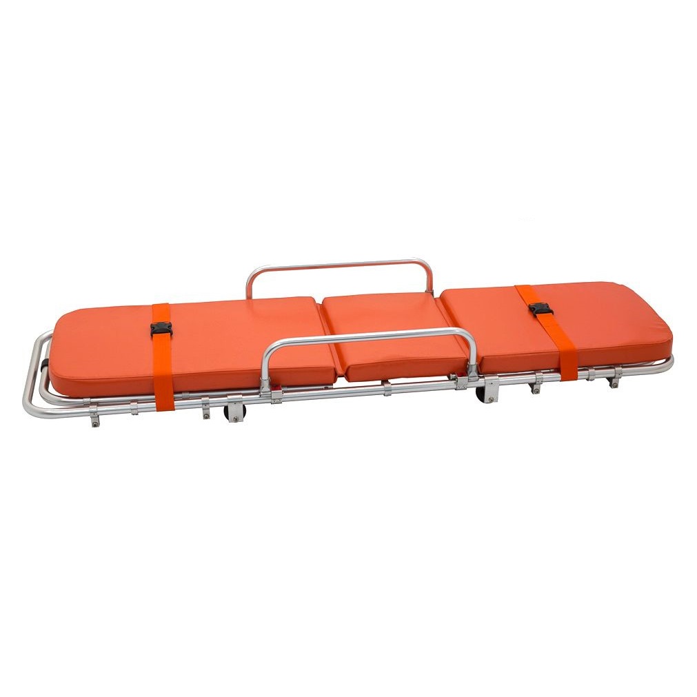 Las patas plegables mecánicas están controladas por las manijas en ambos extremos de la camilla, se pueden dejar fácilmente cuando se sube a la ambulancia.
