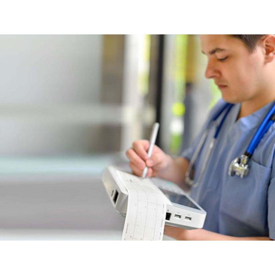 El Mindray BeneHeart R3 es una máquina de ECG de 3 canales que deriva el ECG de reposo, lo que permite por sus teclas rápidas un manejo sencillo y cómodo. Su diseño compacto y peso ligero, hacen a la Mindray R3 ideal para el uso móvil. Los registros de ECG se pueden transferir al PC fácilmente utilizando una memoria USB. Al imprimir el ECG del BeneHeart actúa como un panel de escritura, permitiendo que el médico pueda después grabar notas y firmar para complementar directamente la impresión del ECG.