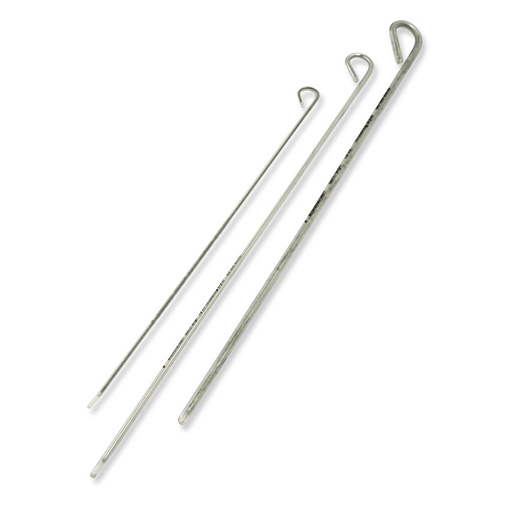 El estilete del tubo endotraqueal, hecho de aluminio maleable cubierto con una funda de plástico, está disponible en tamaños de 6, 10 y 14Fr. El introductor ETT cuenta con una punta suave y flexible que reduce el riesgo de traumatismo al paciente, y un revestimiento de baja fricción que facilita su extracción del tubo endotraqueal. Los estiletes de intubación ETT son estériles y de un solo uso para cada paciente. Los estiletes de intubación son libres de DEHP y no están hechos con látex de caucho natural.