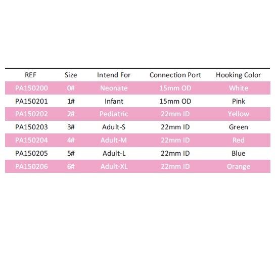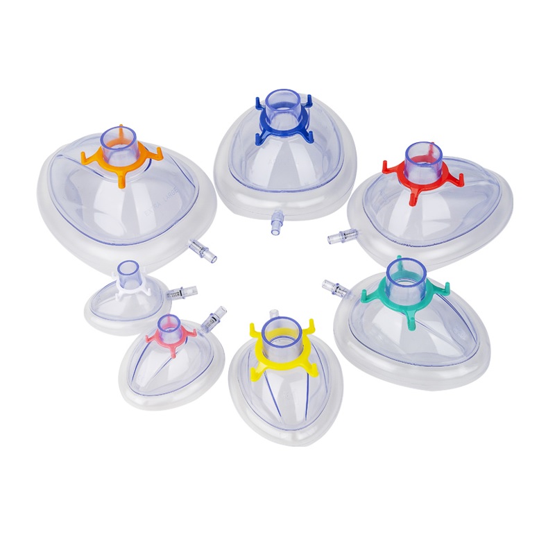Esta mascarilla facial de pvc desechable anatómicamente correcta está diseñada para anestesia general. la máscara viene con una válvula de retención y un anillo de gancho codificado por colores para una fácil identificación del tamaño y permite que se mantenga en su lugar con una correa.
