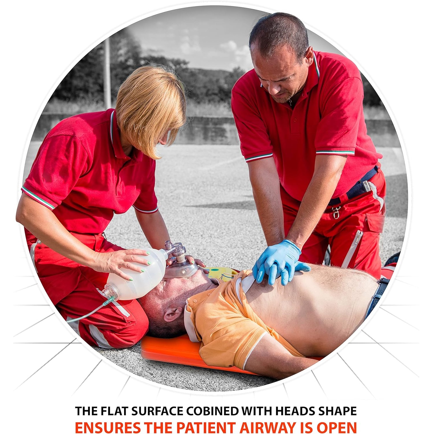 Aplicación eficaz de RCP: la placa de RCP EMS XTRM mide 23.5 x 16 x 3 pulgadas y está diseñada para profesionales médicos. El diseño anatómicamente contorneado garantiza Compresiones efectivas en el pecho. Color: naranja.